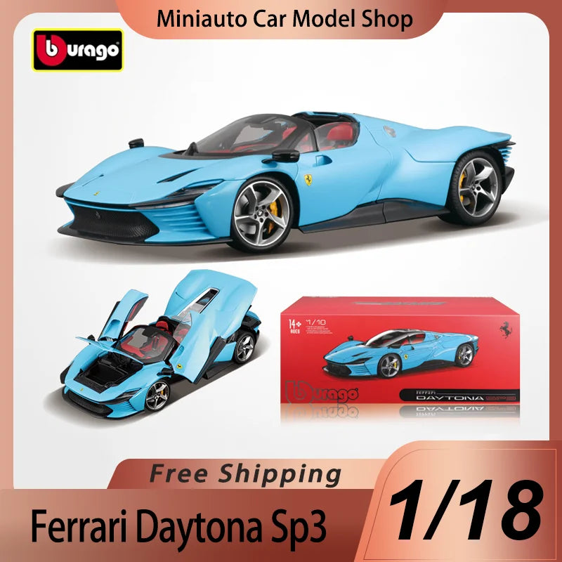 The Bburago 1:18 scale Ferrari Daytona SP3 refined version is a finely detailed diecast model crafted from alloy with rubber tires and ABS plastic components. Measuring approximately 26 x 13 x 6 cm, this replica captures the iconic design of the Ferrari sports car, making it a perfect collectible or gift for enthusiasts aged 14 and above. Featuring no batteries or electric parts, it offers durable quality and authentic styling. Ideal for display, this model combines precision craftsmanship with sleek aesthetics, making it an exceptional addition to any car collection or holiday gift selection.