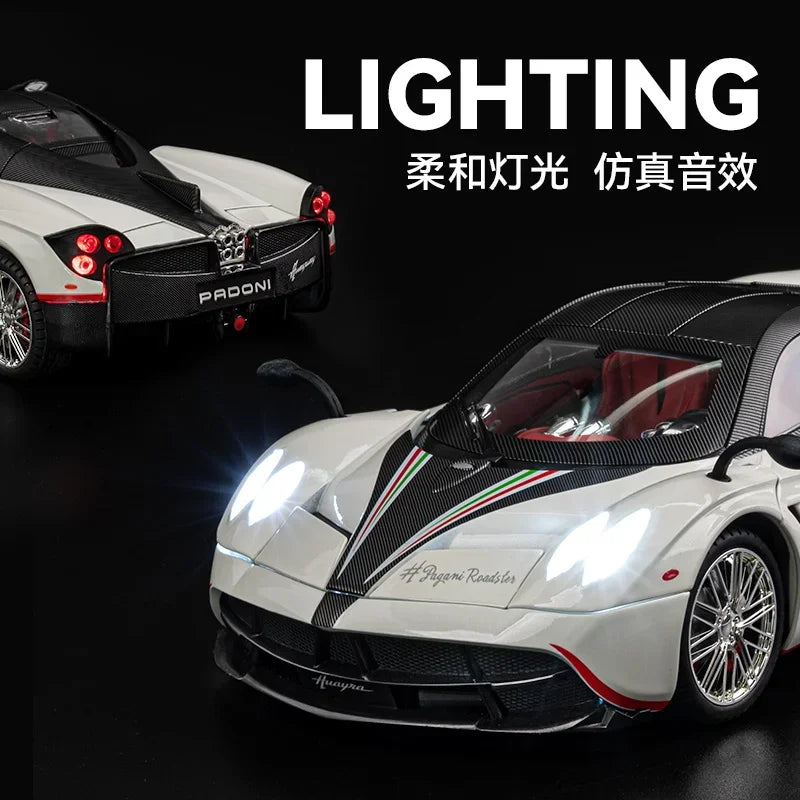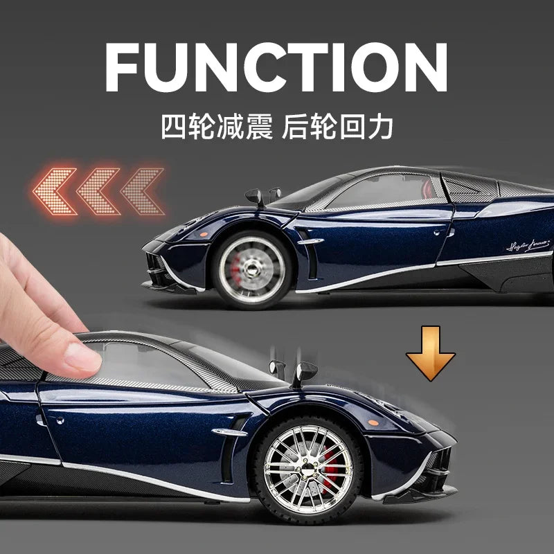 Built with stunning carbon-style accents and precision lines, this model reflects the Huayra’s legendary engineering. When placed beside a full-width image, it creates an immersive visual moment perfect for highlighting a premium collectible or a new luxury release.